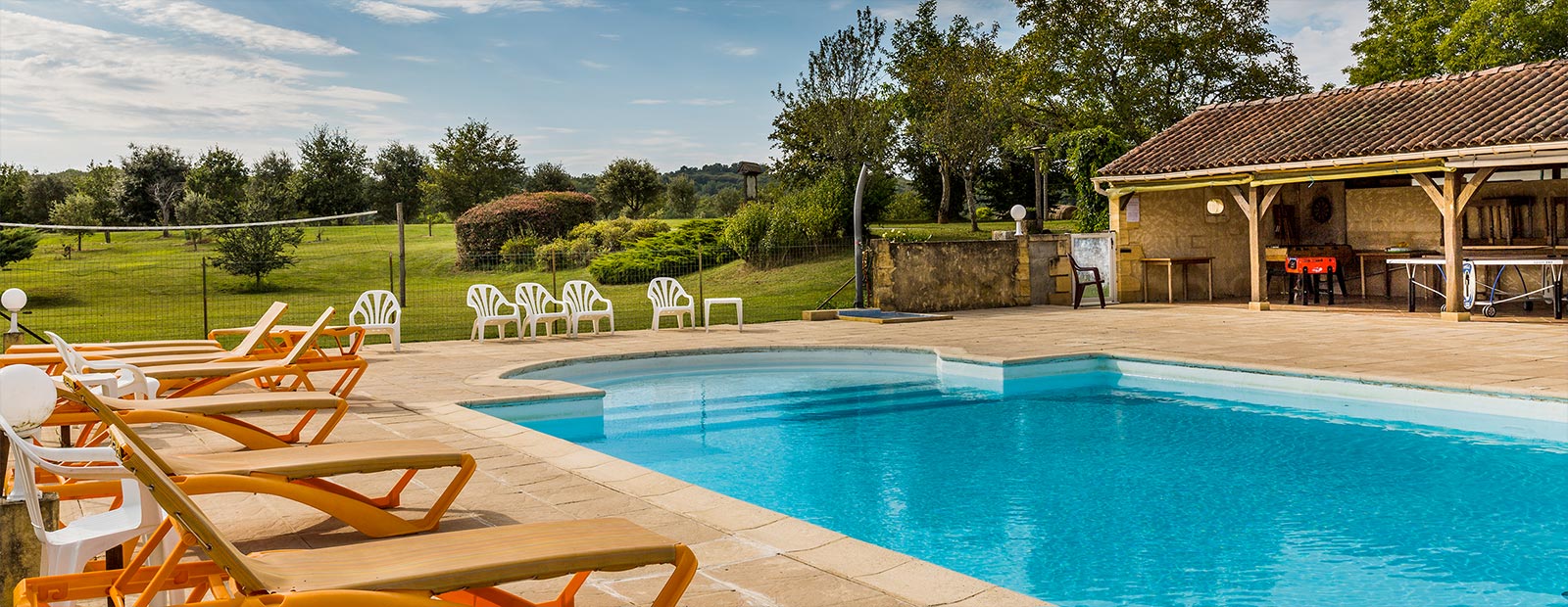 la piscine de 14m x 7m pour 1,35m de profondeur, est accessible à tous les pensionnaires de nos locations. Elle est chauffée du mois de juin au 15 septembre et dispose d’un bain enfant.